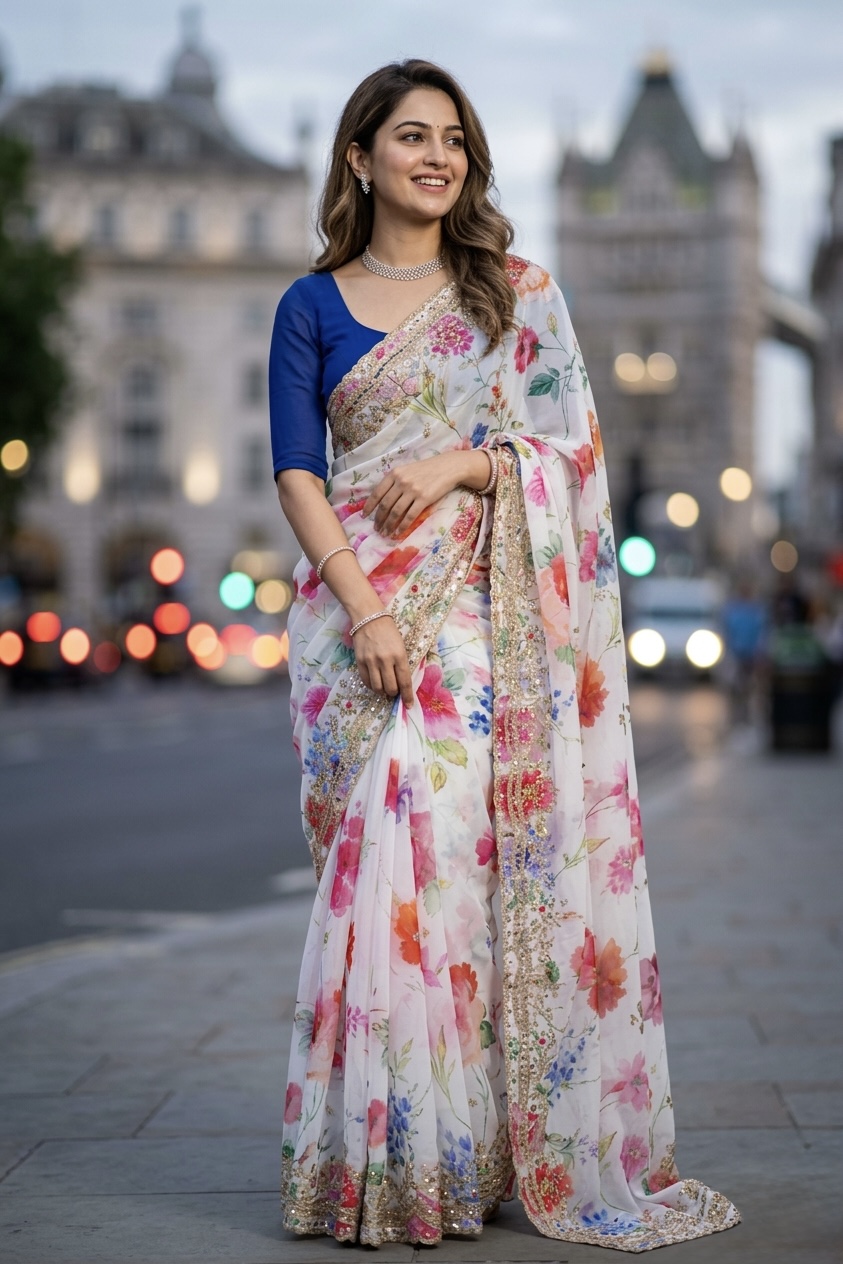 Multi Floral Digital Printed Georgette Saree