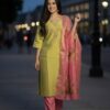 Elegant Lime Green Kurta Set with floral Printed Dupatta
