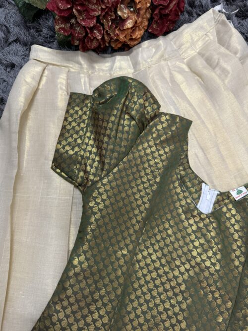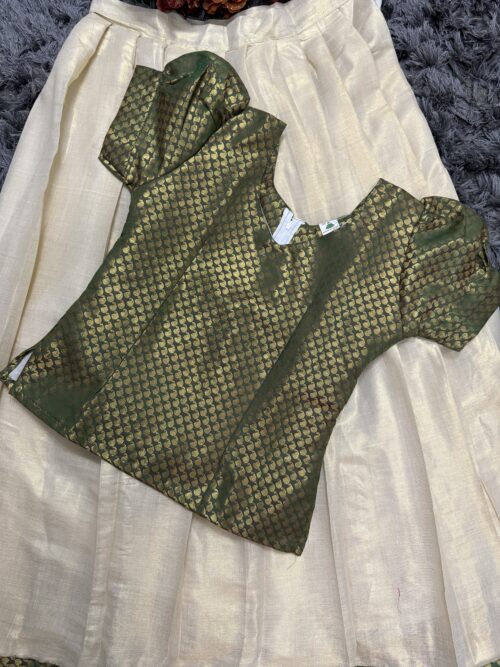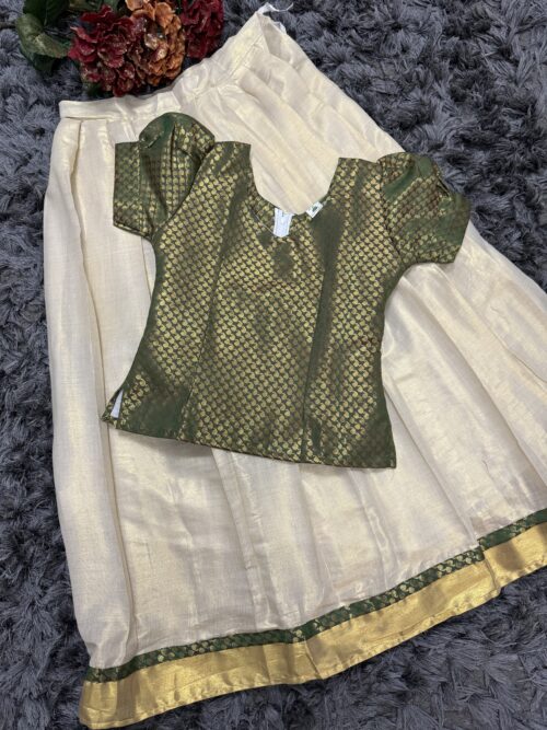 Kerala Tissue 9-10 years girl pattupavada with brocade top