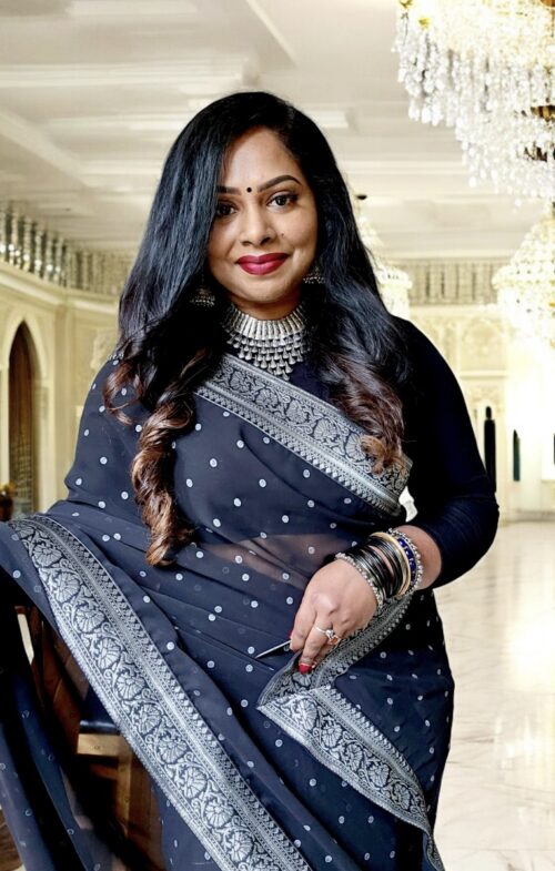 Black Georgette Silver Butti Saree with beautiful Zari lace border