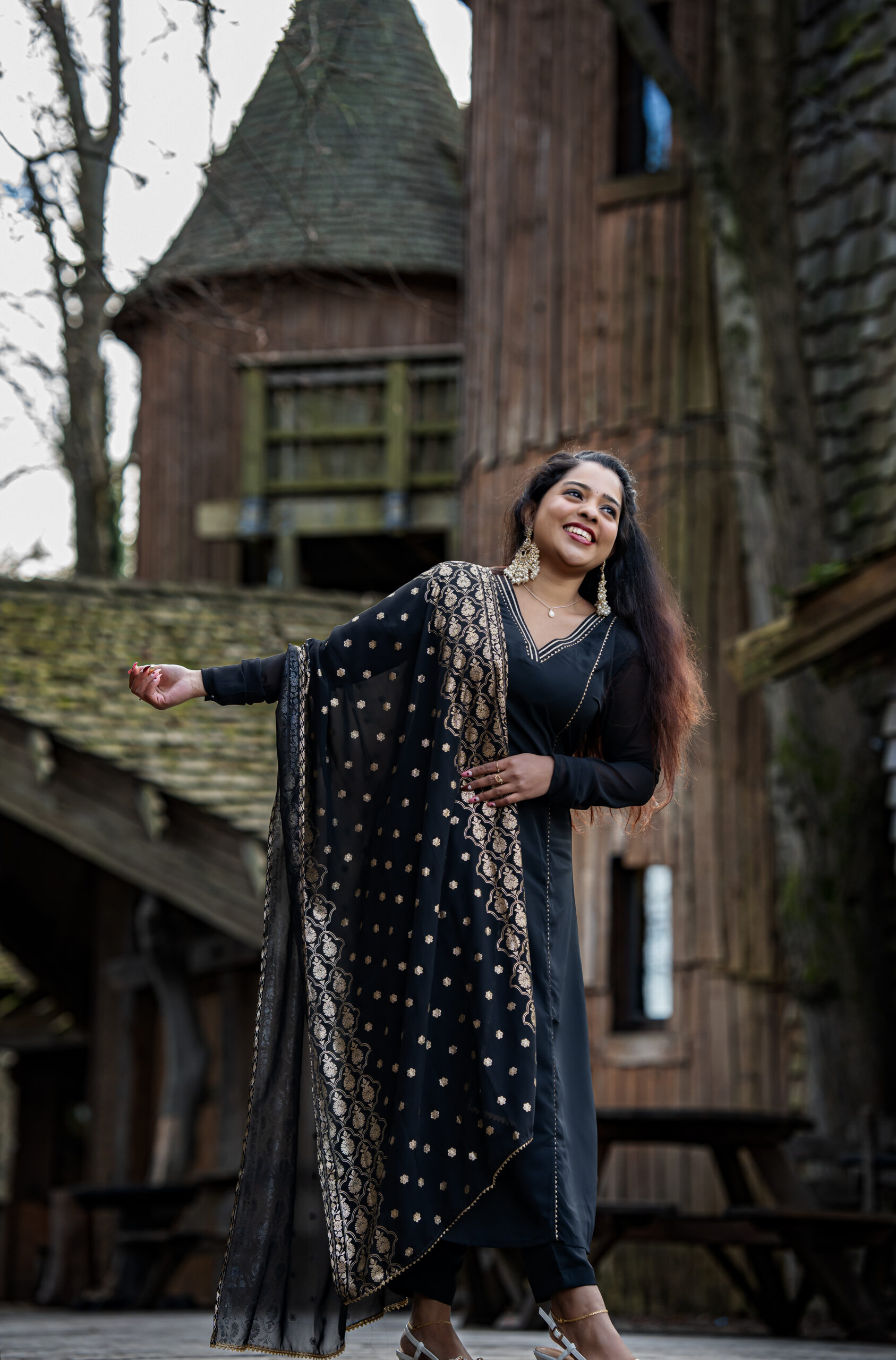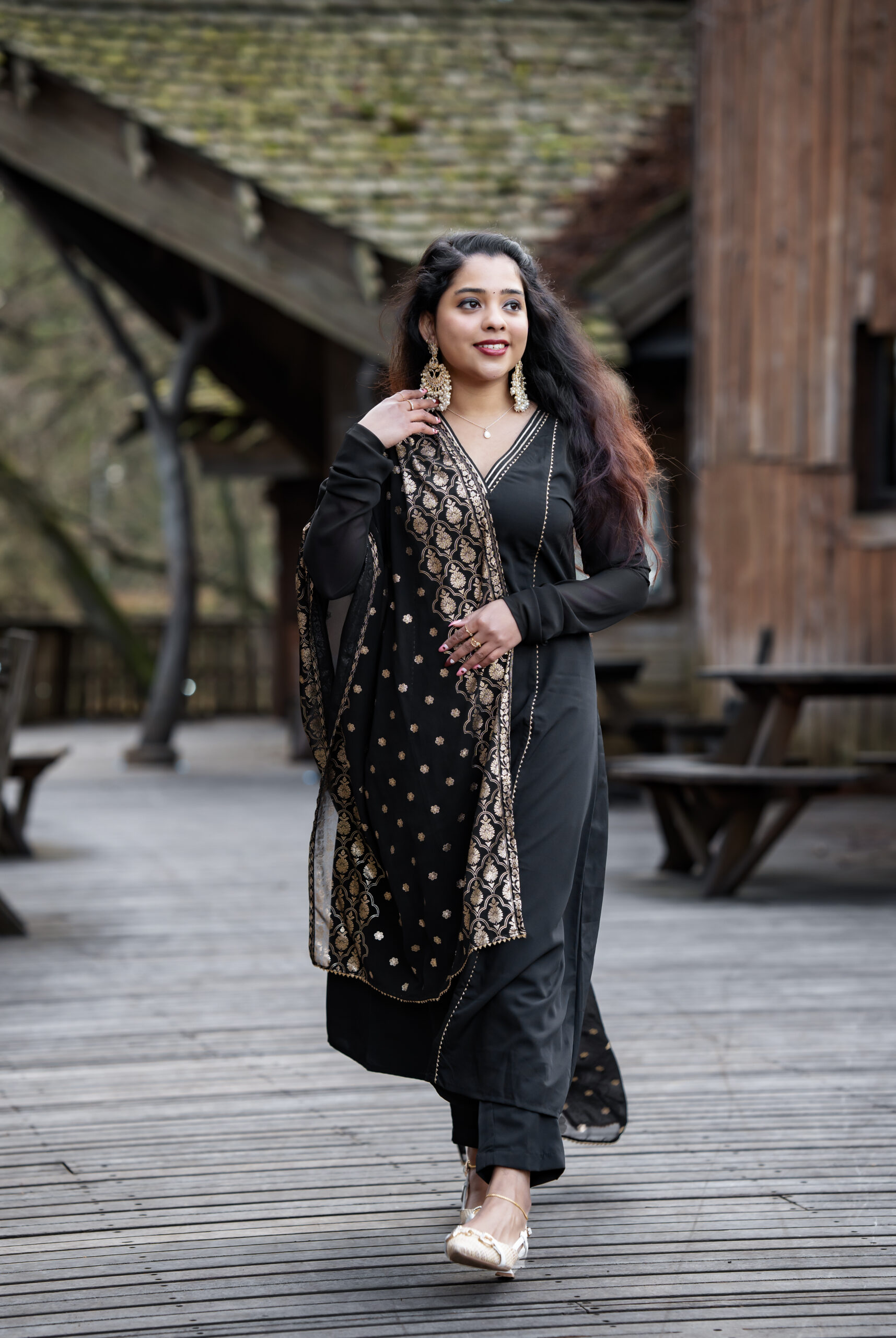 Black golden printed duppatta – Salwar set – full sleeve