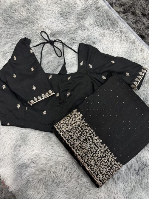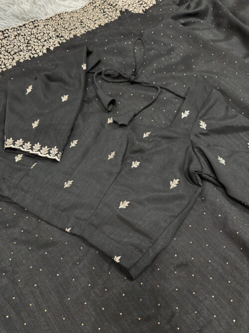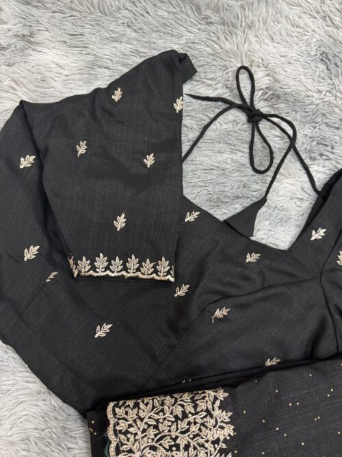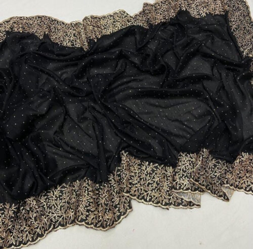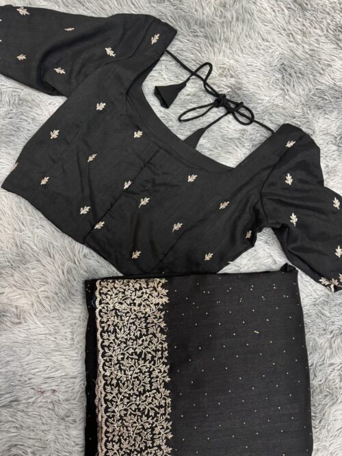 Black Vichithra Silk Embroidery Saree with Stone Work