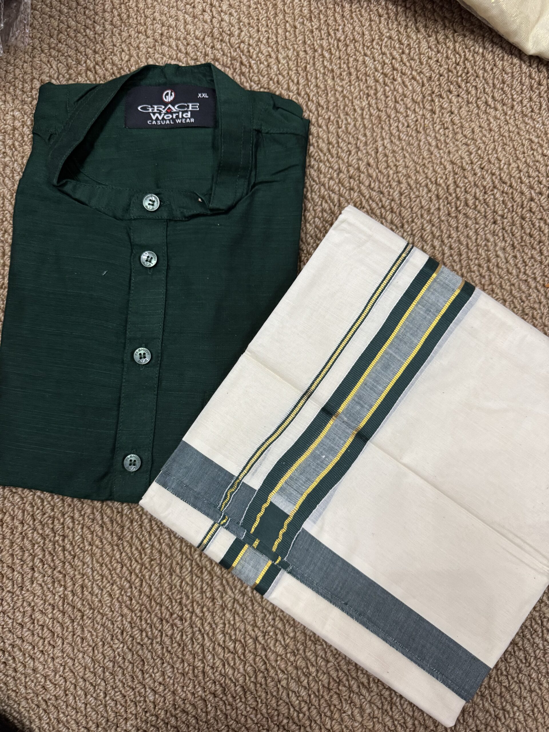 Slub Silk kurtha and Mundu