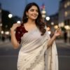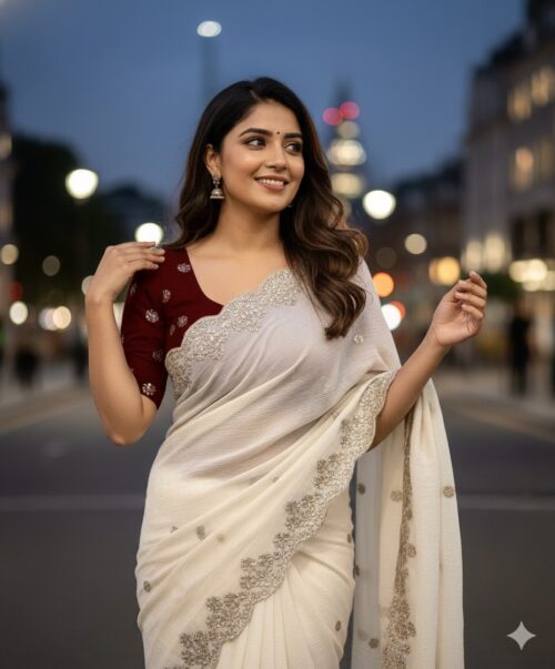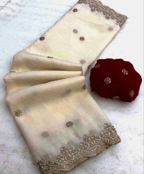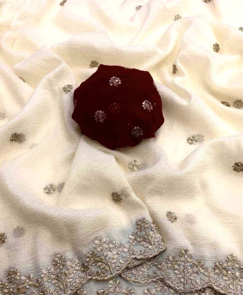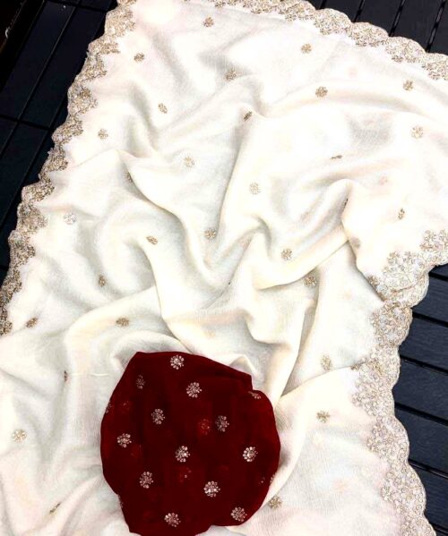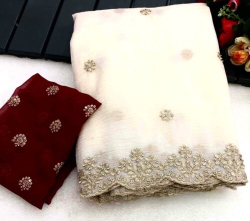 Saree with blouse material.( dark Maroon Sequins blouse material)