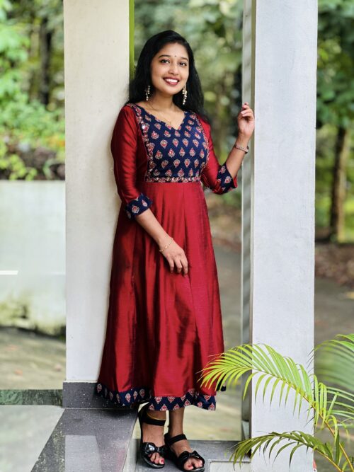 Designer Handwork Panel Kurthi – Maroon Red