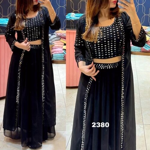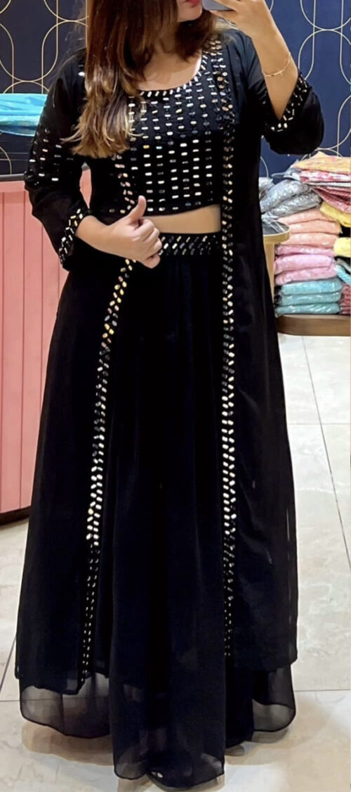 *Skirt**:Georgette fabric skirt attached with lining with original mirror handwork on belt