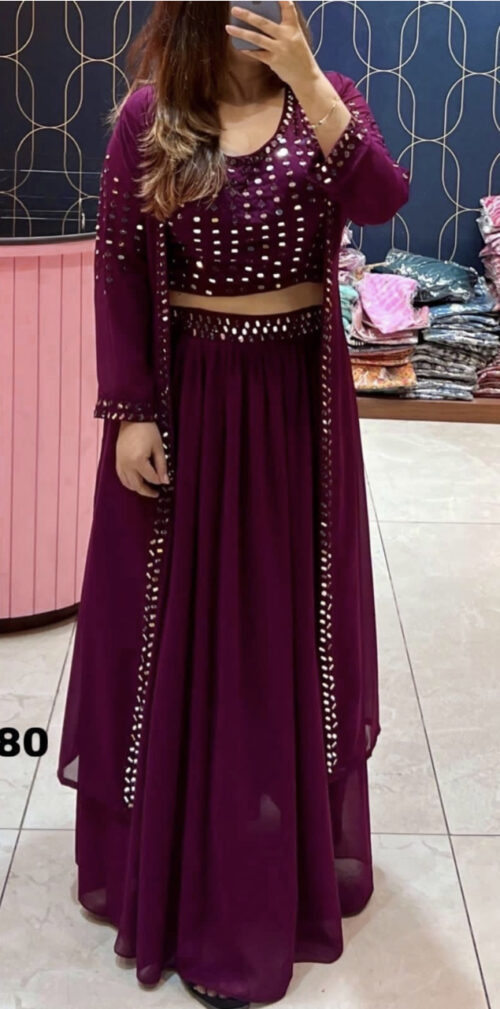 *Skirt**:Georgette fabric skirt attached with lining with original mirror handwork on belt