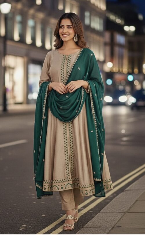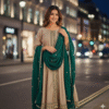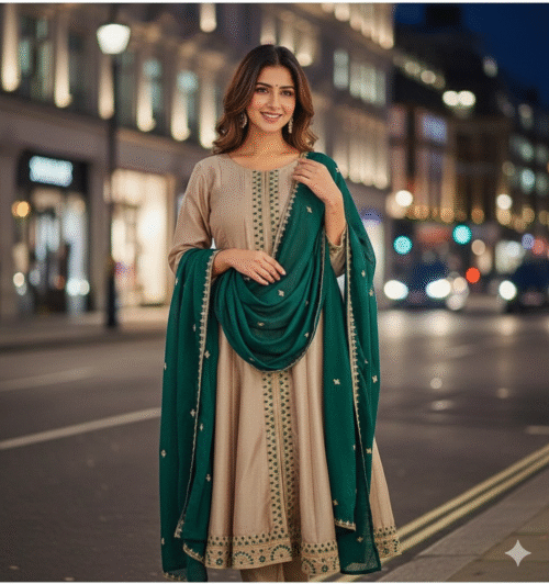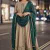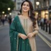 Elegant Champagne and Green Anarkali Suit