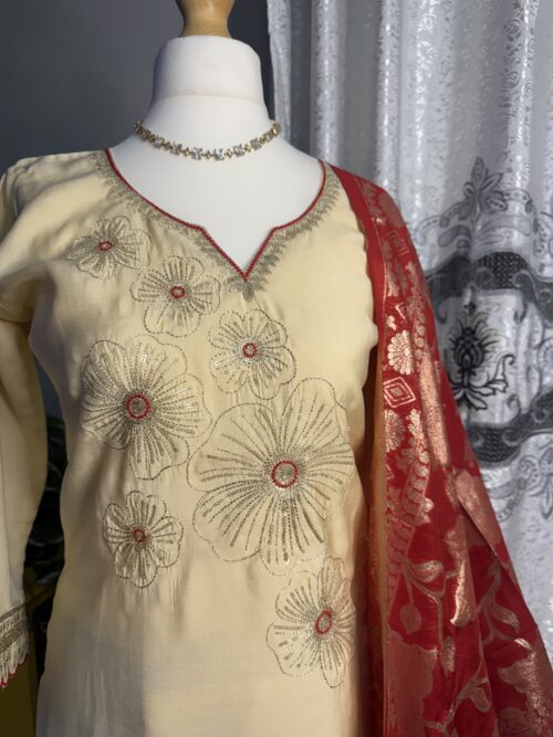 Care Instructions: To maintain the beauty and integrity of the fabric and handwork, dry clean only.