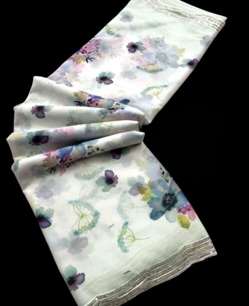 Georgette Floral digital print saree with beautiful sequinembroidery lace