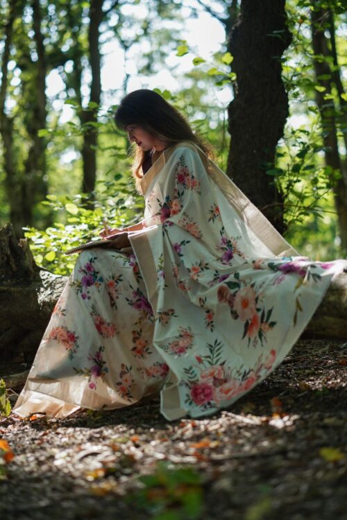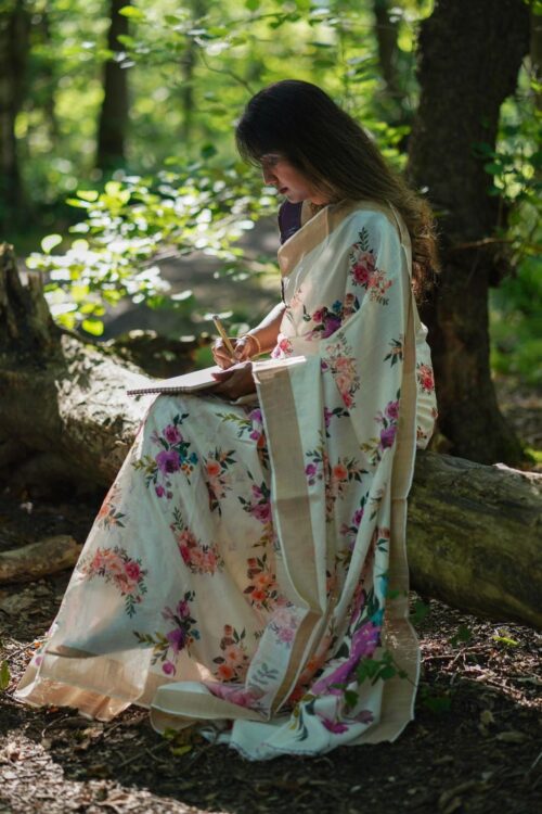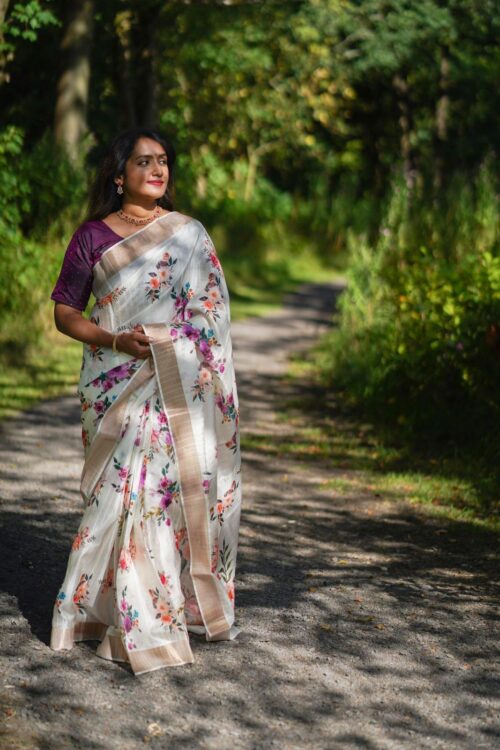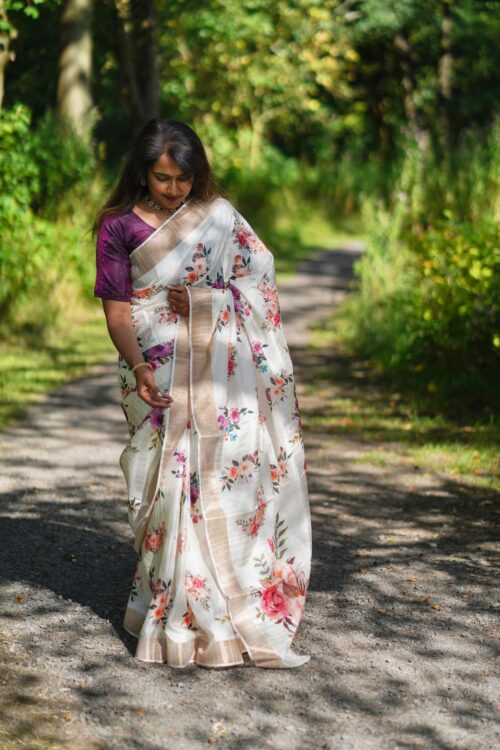 Dola Silk floral Saree with running blouse material.