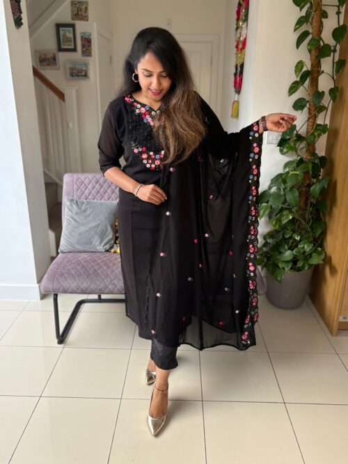 Georgette Floral Embroidery Salwar Set with beautifully scalloped embroidered dupatta