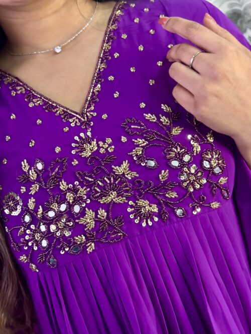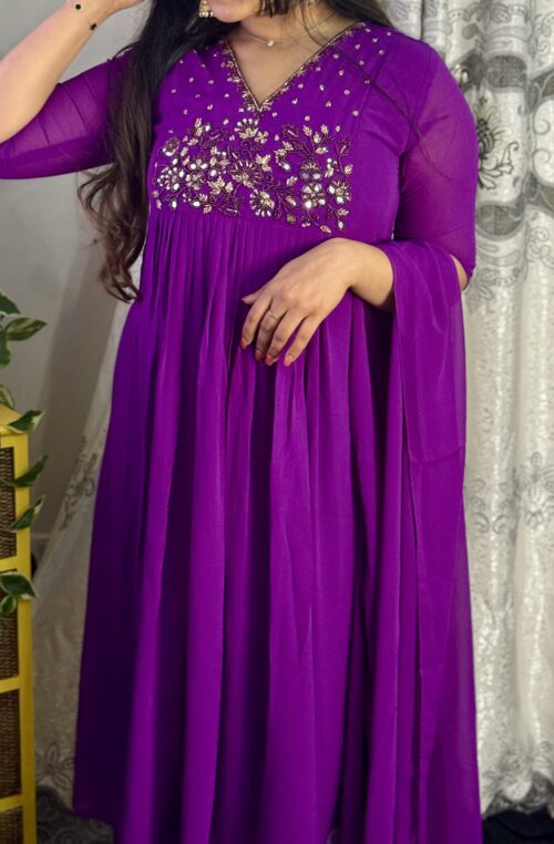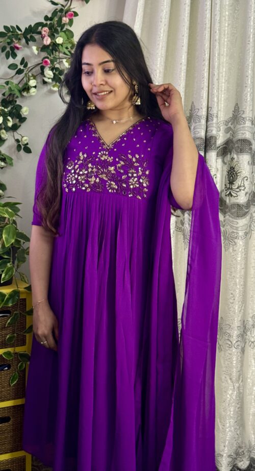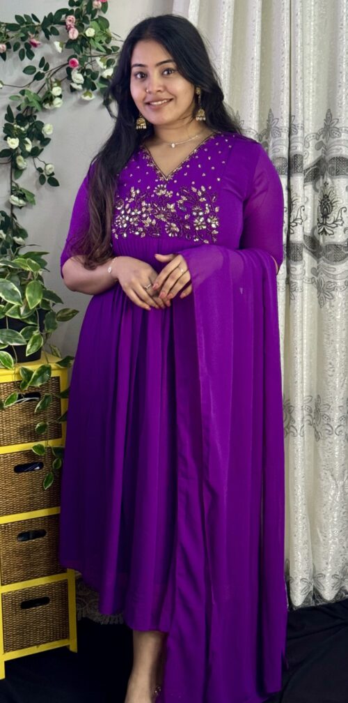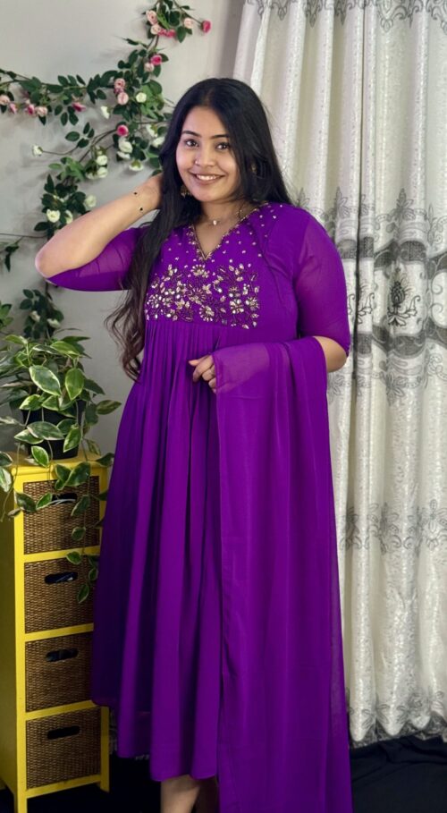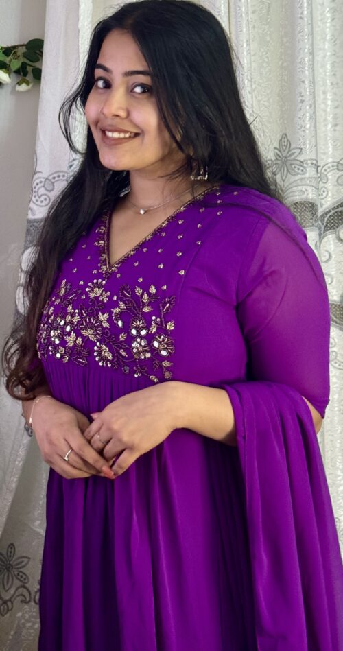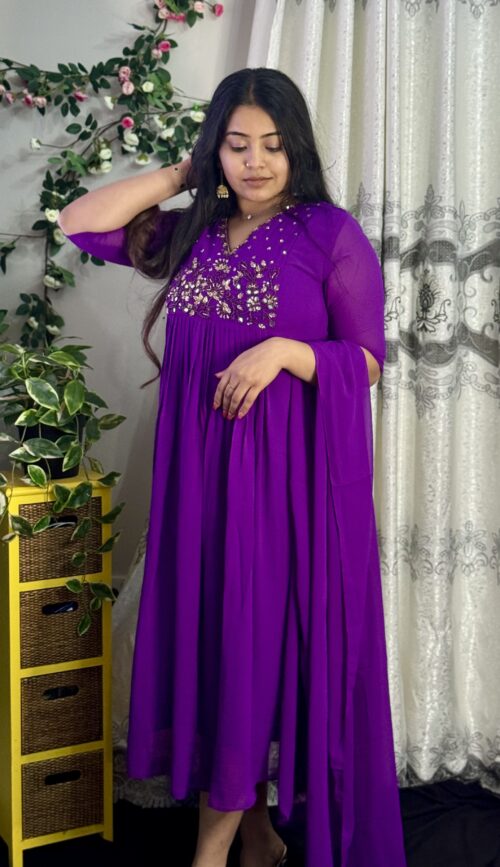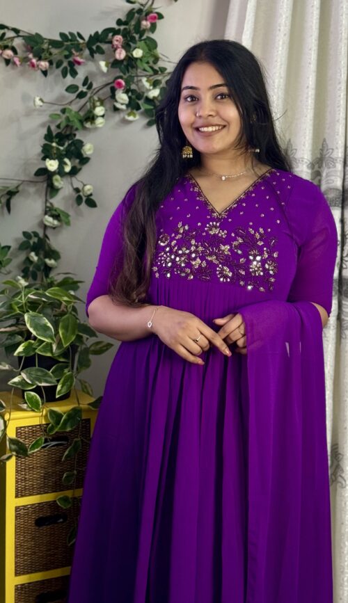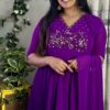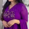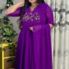 Step into elegance with this vibrant purple embroidered kurti dupatta set — a perfect blend of comfort, flow, and festive charm.
