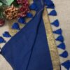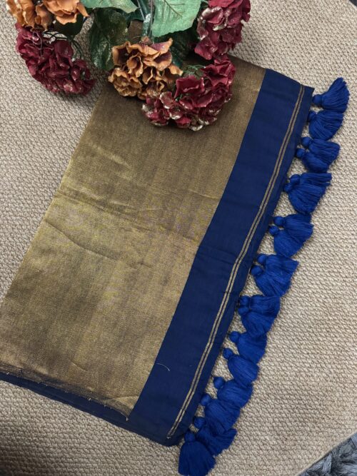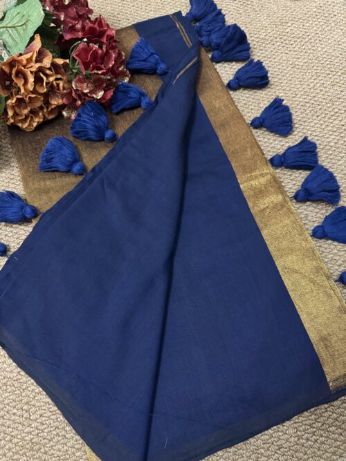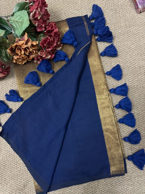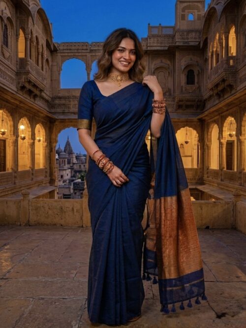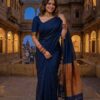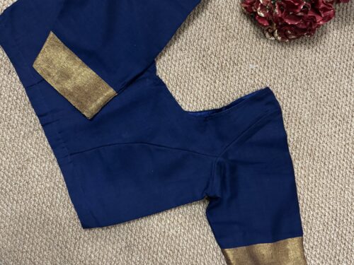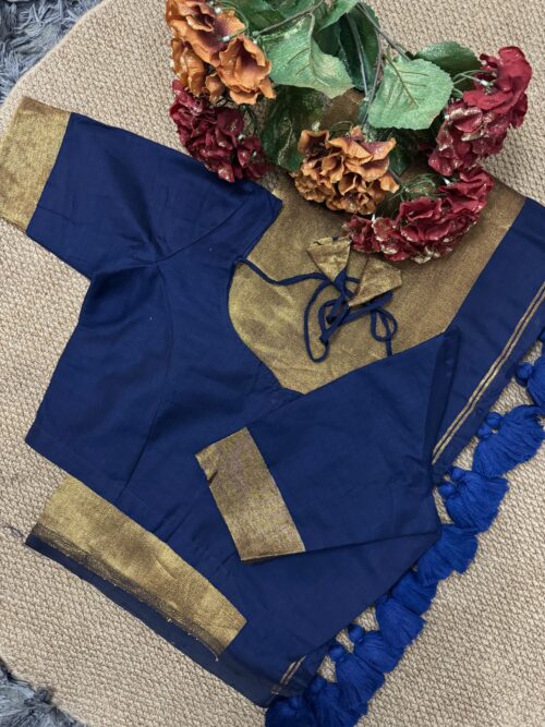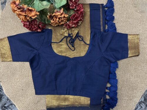Khadi Cotton Saree – with stitched blouse – Dark Navy Blue