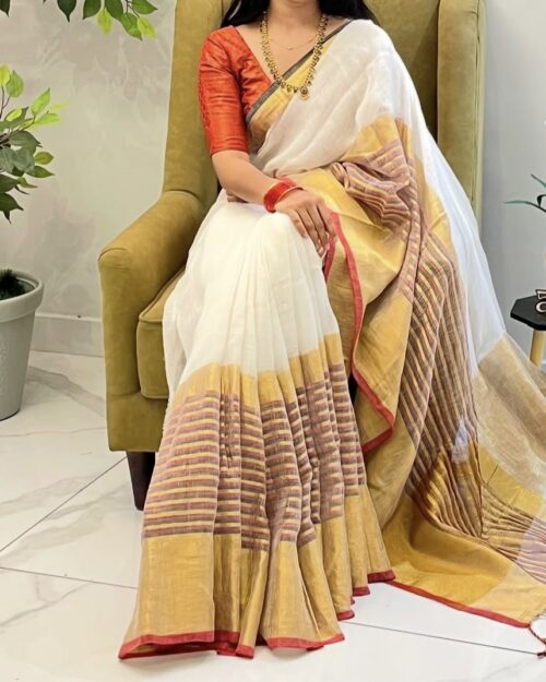 Linen Saree with Broad Zari Border Saree –