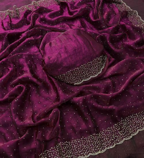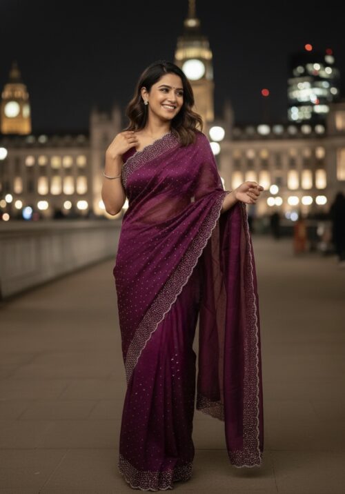 Space Silk Saree with gorgeous crystal stone work and scallop border.