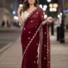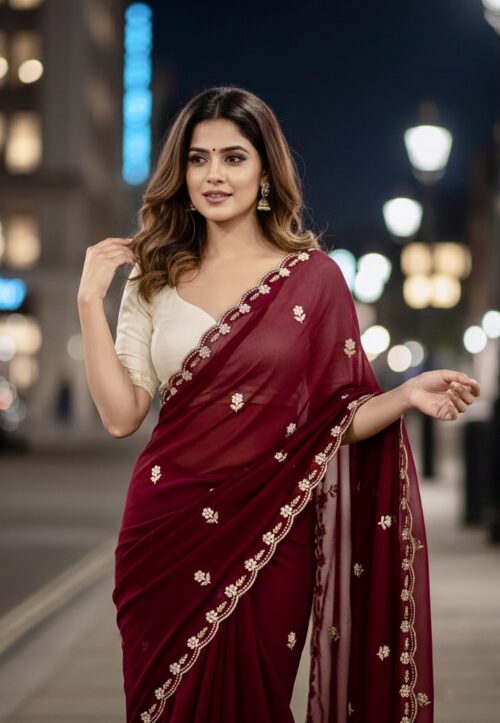 Colour -Saree :Maroon , Blouse – White