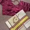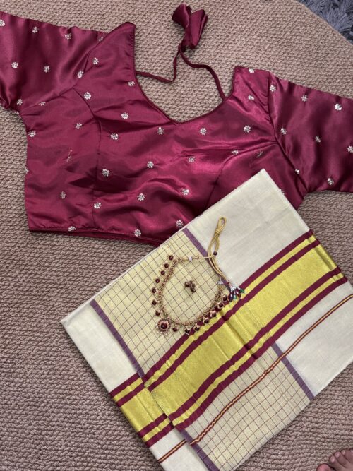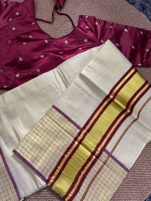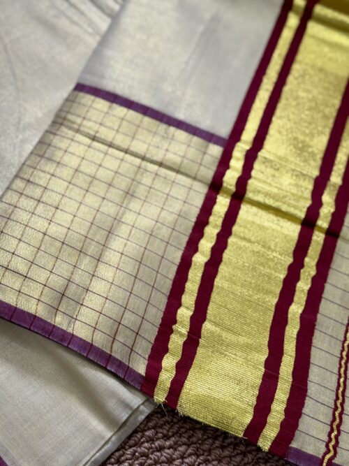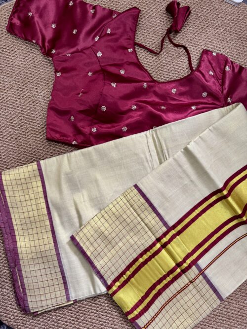 Premium quality Check Pattern saree with Maroon Butti Work Stitched blouse
