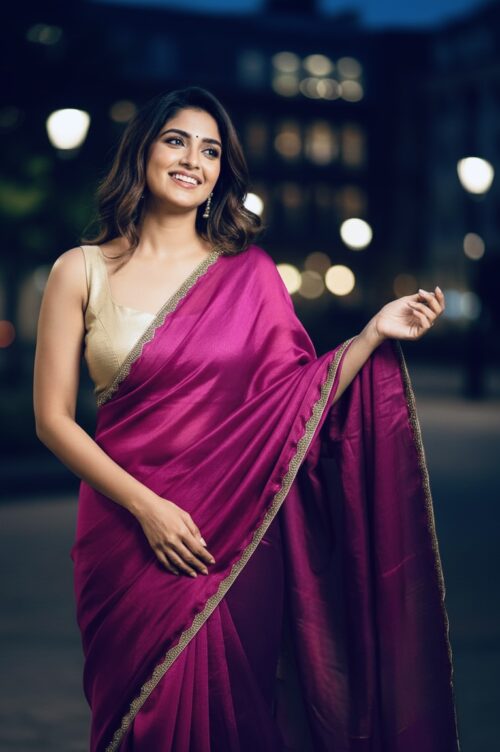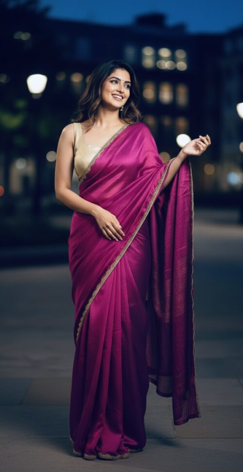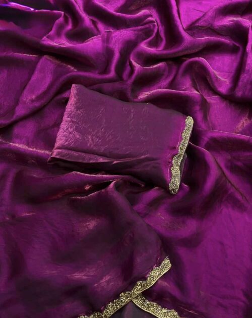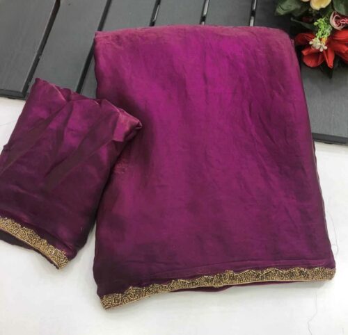 Premium Quality Space Silk Saree with gorgeous gold stone lace work