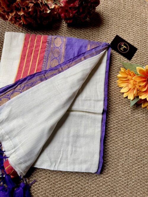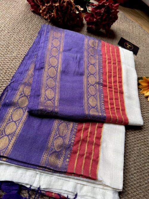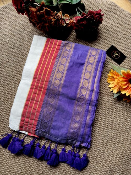 Step into grace with our stunning handwoven Mul Mul saree . No blouse included
