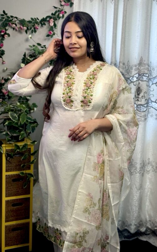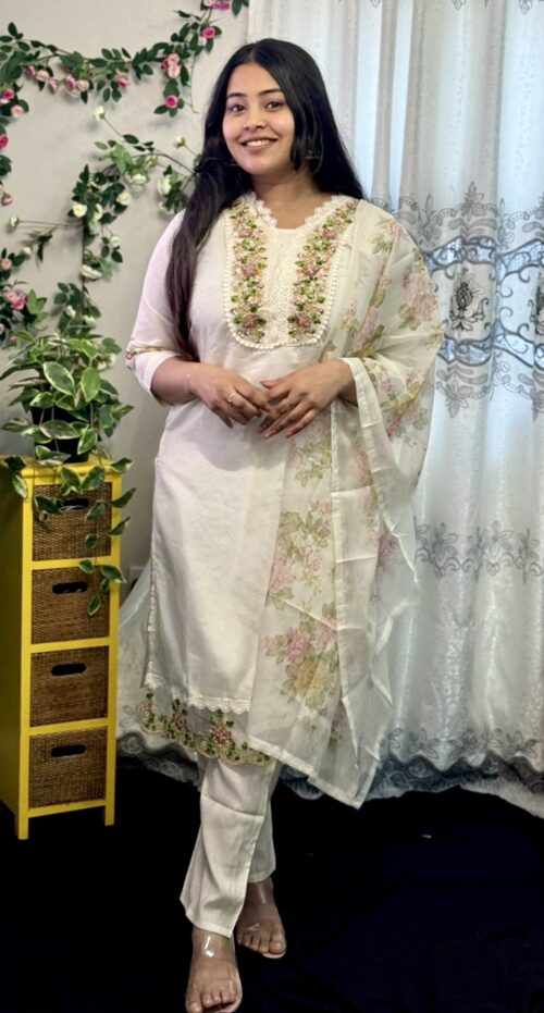 Premium quality cotton fabric with a charming floral embroidery at yoke portion.