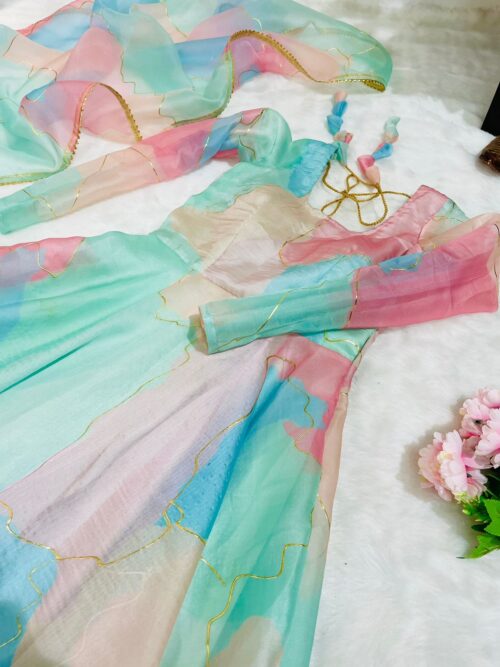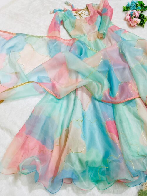 Organza Taby Silk Anarkali Set with Gold Foil Work