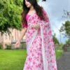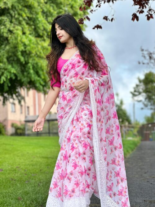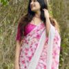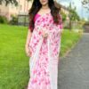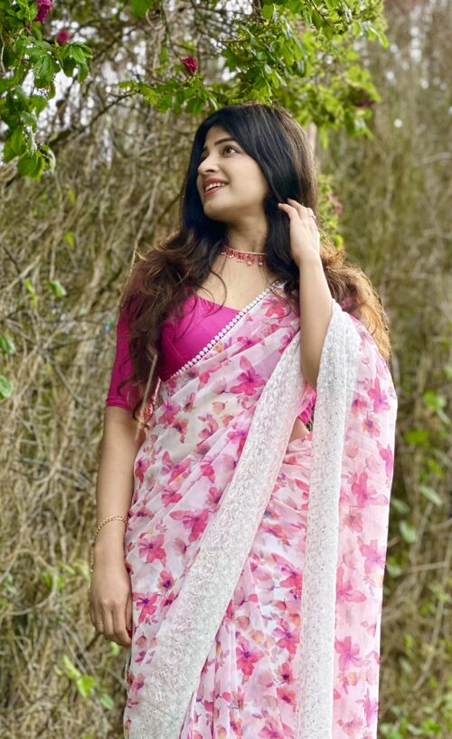Pink Floral Ready To Wear Saree With Stitched Blouse