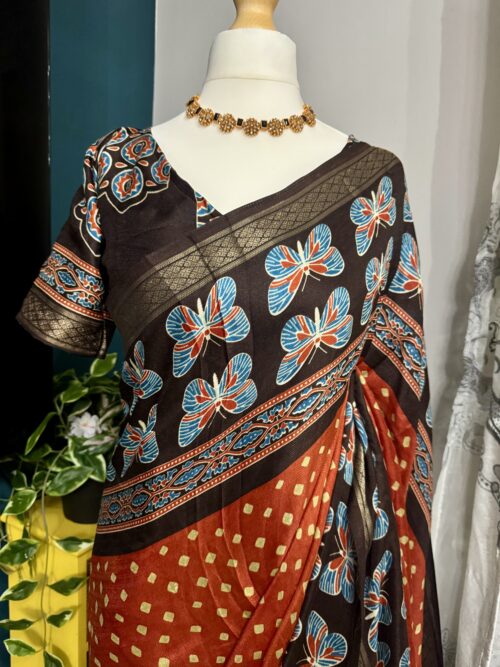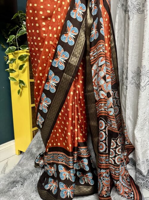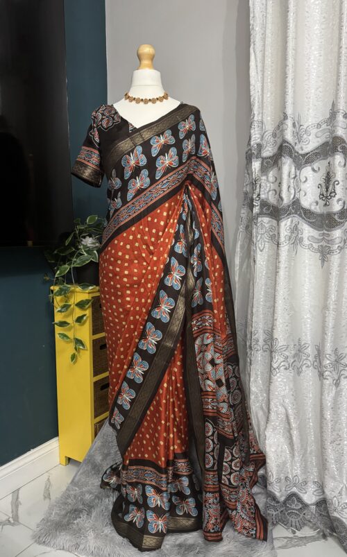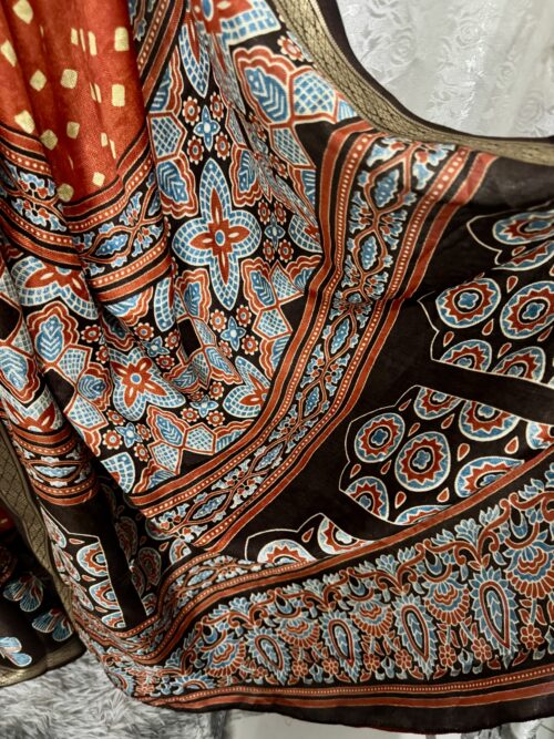 Gorgeous rustic orange & brown bandini ajrakh printed saree!