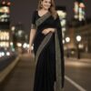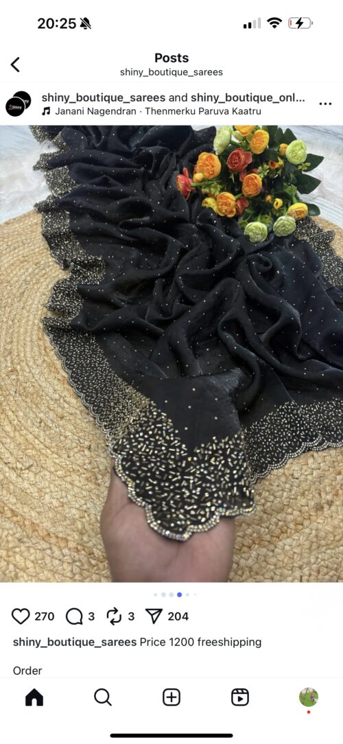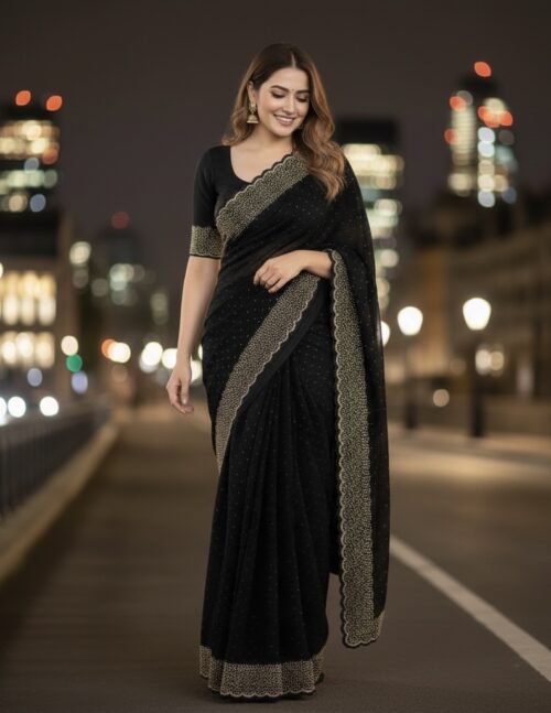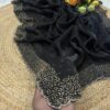 Crushed Space Silk Saree with gorgeous crystal stone and bead work and scallop border
