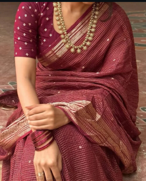 Viscose Check Silk Saree with beautifully adorned intricate golden Zari border