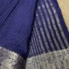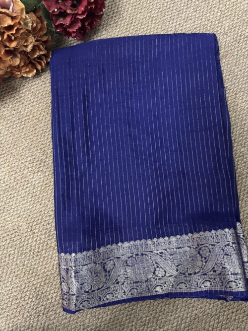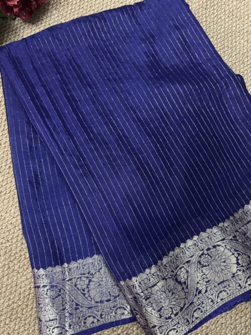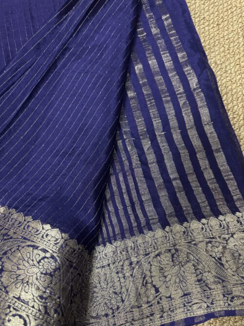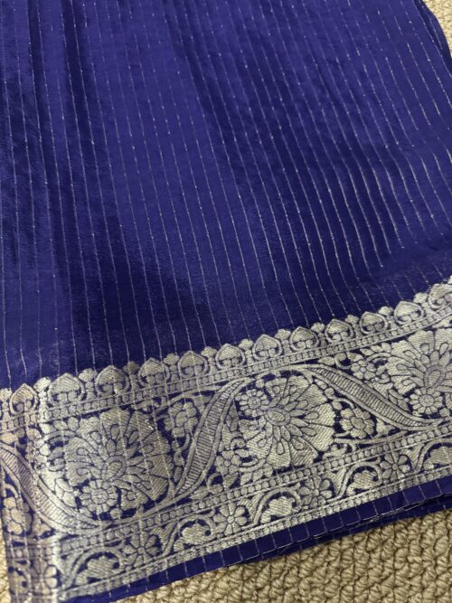 Viscose Chinon antique gold metallic Stripe Saree with floral jacquard border