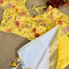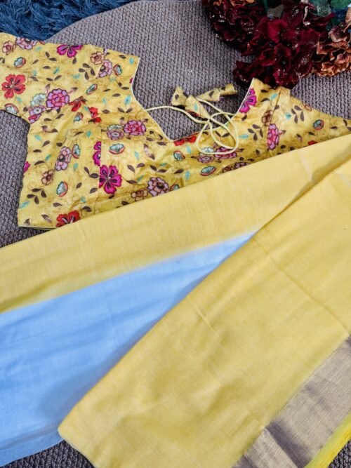 Yellow MulMul Cotton Saree with Designer Stitched Blouse
